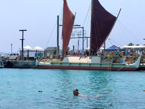 その数年後、2001年にハワイに移住しましたが、実際にホクリア号に対面したのは、2018年。コナのカイルア・ピアでホクレアを実際に目にしましたのですけれど、