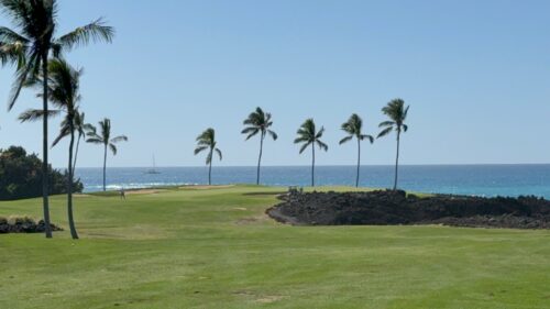 現在ぺブルビーチで熱戦が繰りひろげられていますね。 やはり、オーシャンフロントのホールは綺麗でありながら、スリルがあり、見ていて最高ですね。 ここハワイ島にも、海岸線に沿って展開する名ホールの数々が存在します。五感で楽し …